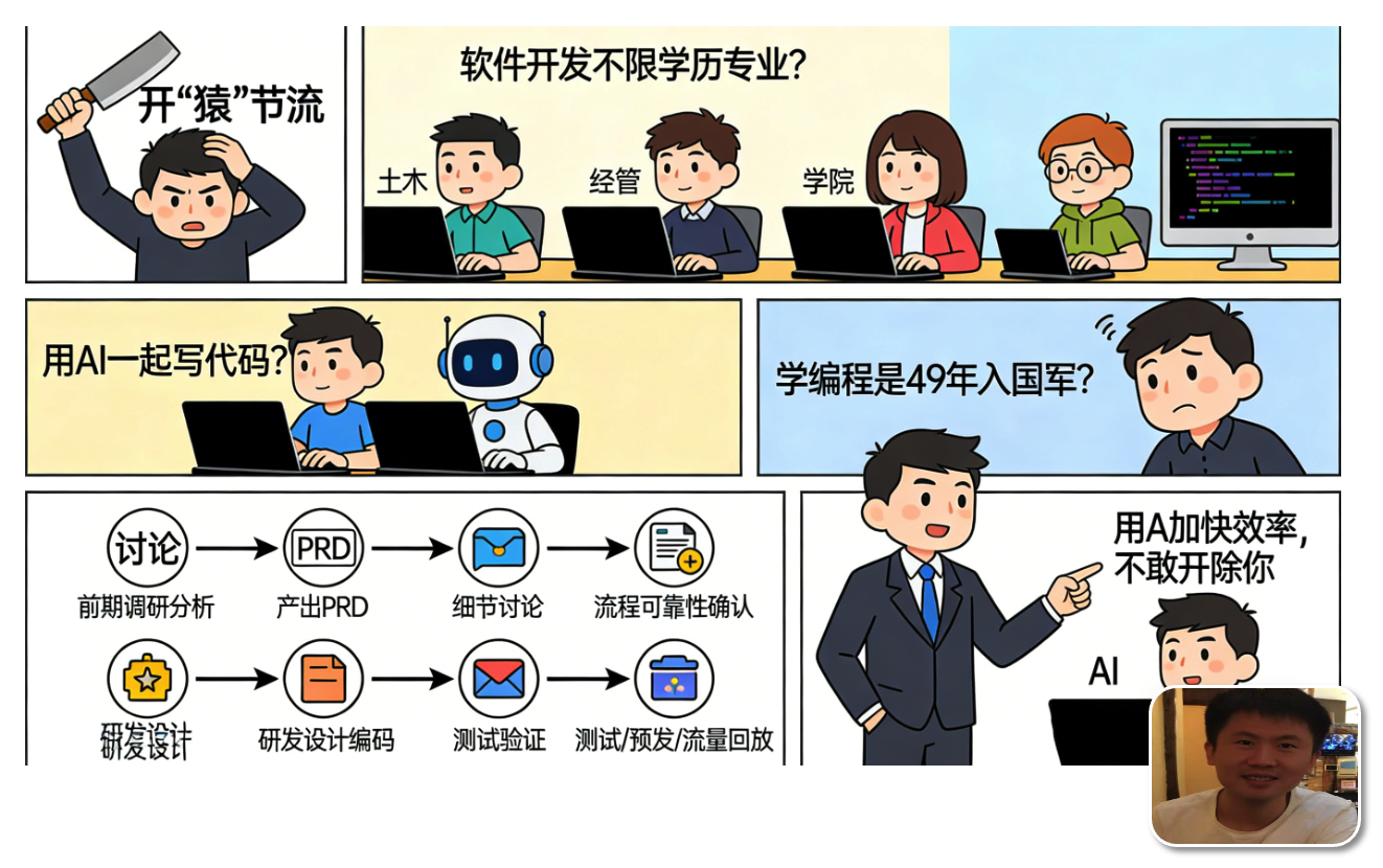 他们刻意在描述上降低了软件交付的复杂度,并把 AI 编码等同于软件交付,等价于程序员👨🏻💻的工作就只是写代码。从而忽视了,一个复杂项目需求,在前期的调研、讨论、分析,产出 PRD 文档,在进行细节的讨论,确保流程的可靠行。最后才是研发设计和编码实现,以及测试验证、预发验证、流量回放等,这才是一整个需求交付的过程。编码,只是其中的一小部分而已。