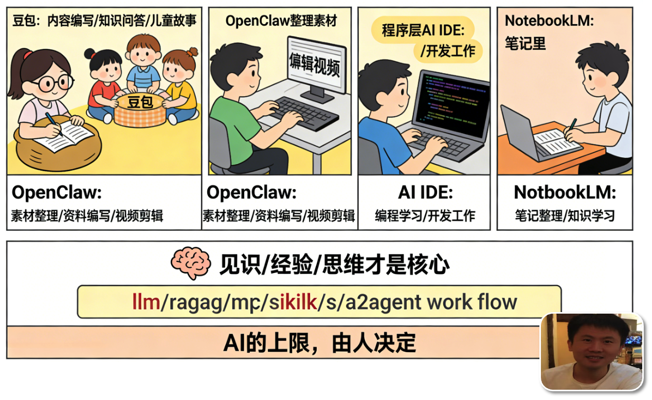 AI 是这个时代非常牛的工具,也改变了很多的工作协作方式,还为各类场景带来了智能体赋能。如;豆包、OpenClaw、AI IDE、NotebookLM...,