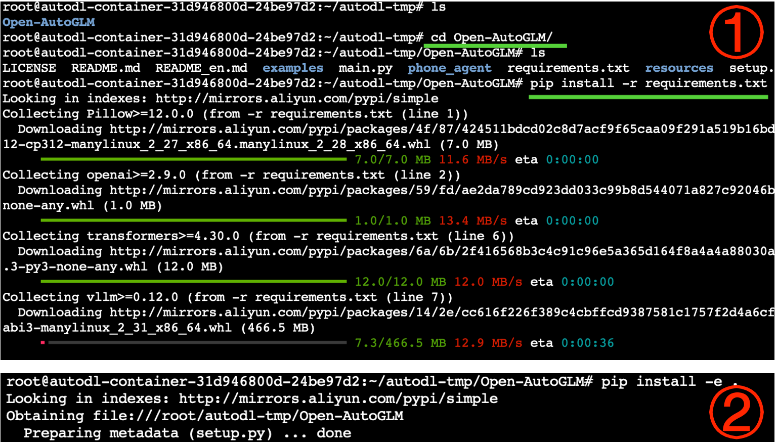 pip config set global.index-url https://pypi.tuna.tsinghua.edu.cn/simple cd Open-AutoGLM以此执行安装脚本。这个过程需要一段时间。如果有失败,可以重复执行脚本。