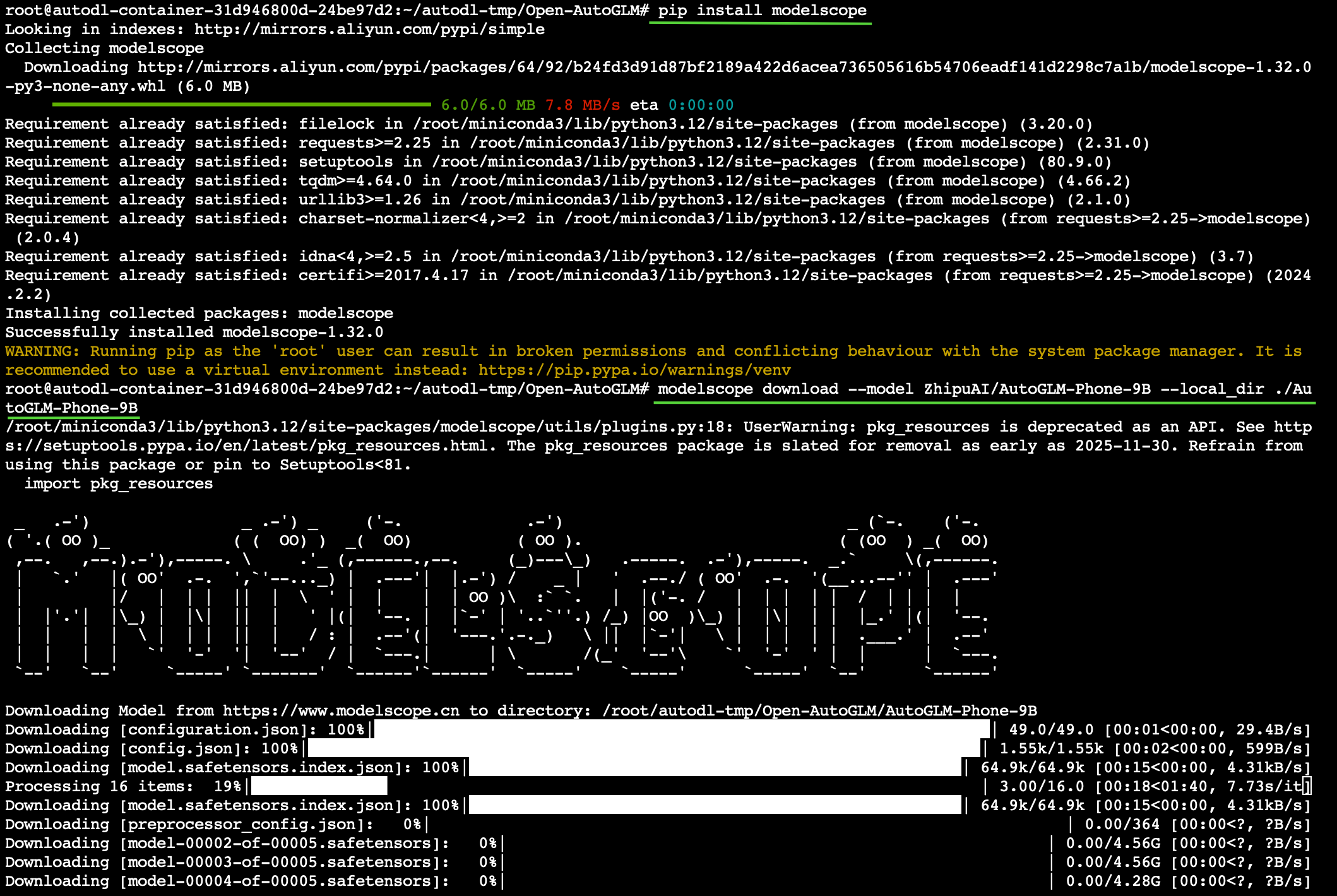 modelscope download --model ZhipuAI/AutoGLM-Phone-9B --local_dir ./AutoGLM-Phone-9B