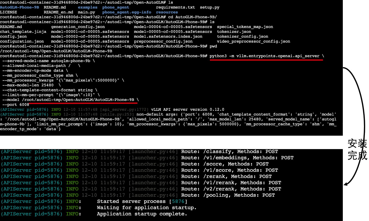 zai-org/AutoGLM-Phone-9B从https://huggingface.co/zai-org/AutoGLM-Phone-9B/tree/main下载,修改为已经下载好的本地的路径地址。 - port 修改为 6008 端口,因为