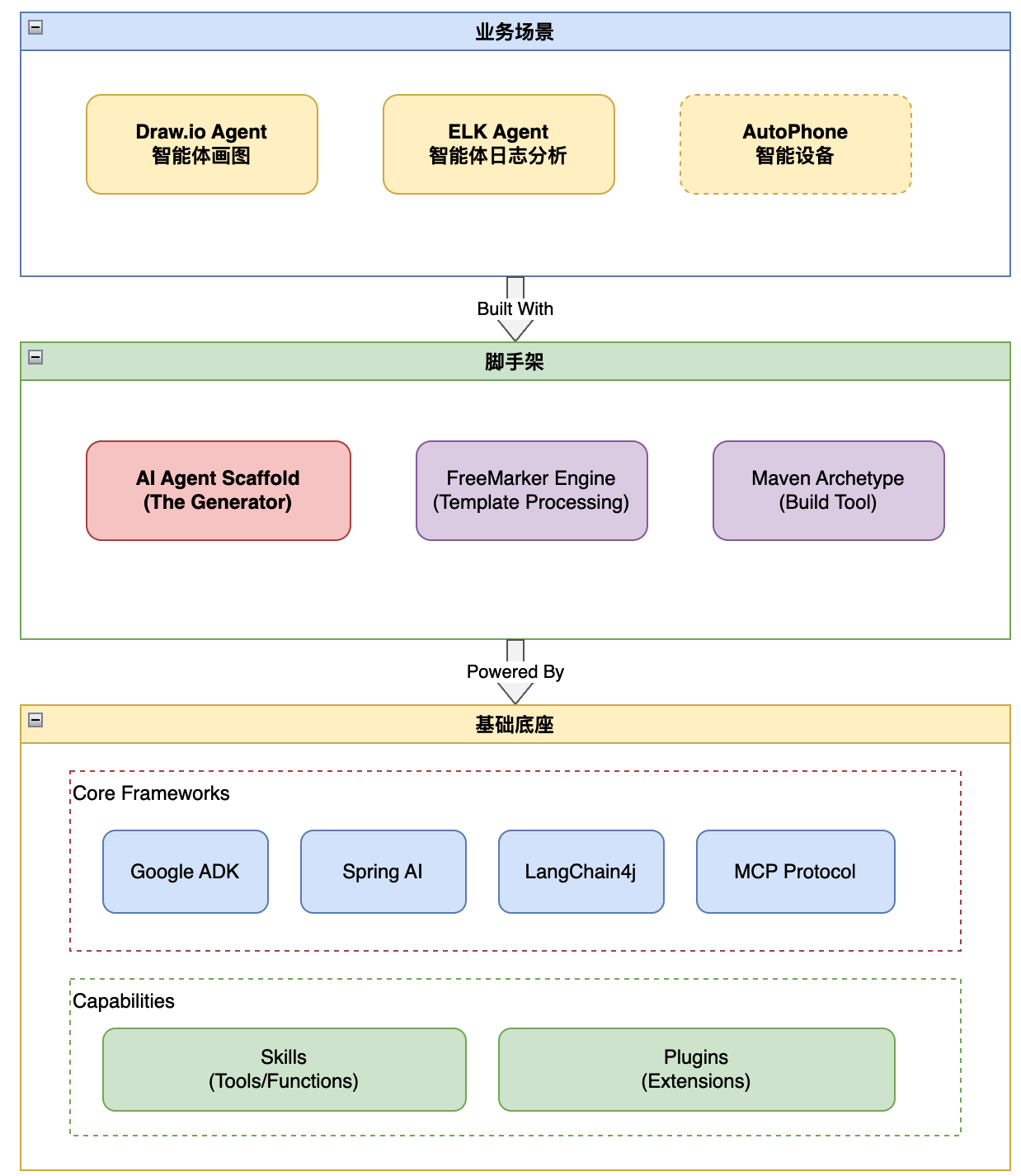 # 《AI Agent 脚手架 + 场景应用》- 综合 Spring AI、LangChain4j + Google ADK(a2a、mcp、skills),打造全新智能体架构方案。