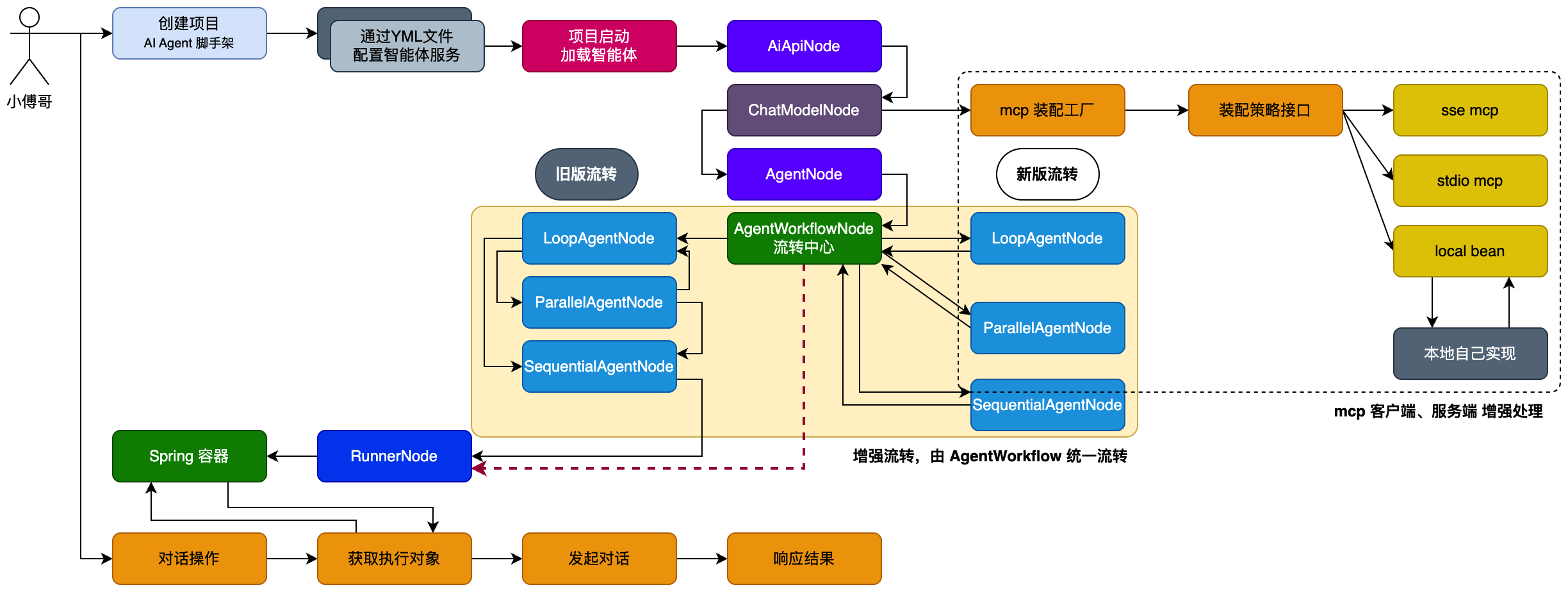 在用户使用 ai agent 脚手架的时候,会有诉求扩展一些自己实现的 mcp 服务。比如,做一些智能体客服场景,或者公司内部的系统巡检场景,这些场景并没有提供统一的 mcp 服务,则可能都要自己扩展,扩展后装配到整个智能体中。