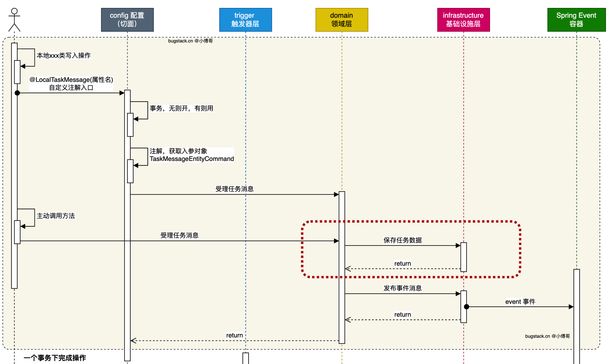 设计通用的本地消息任务表和数据的插入处理。此表由引入技术组件的上游系统自行在数据库中配置。之后在调用组件的时候,就可以以同一个数据源对库表进行操作。
