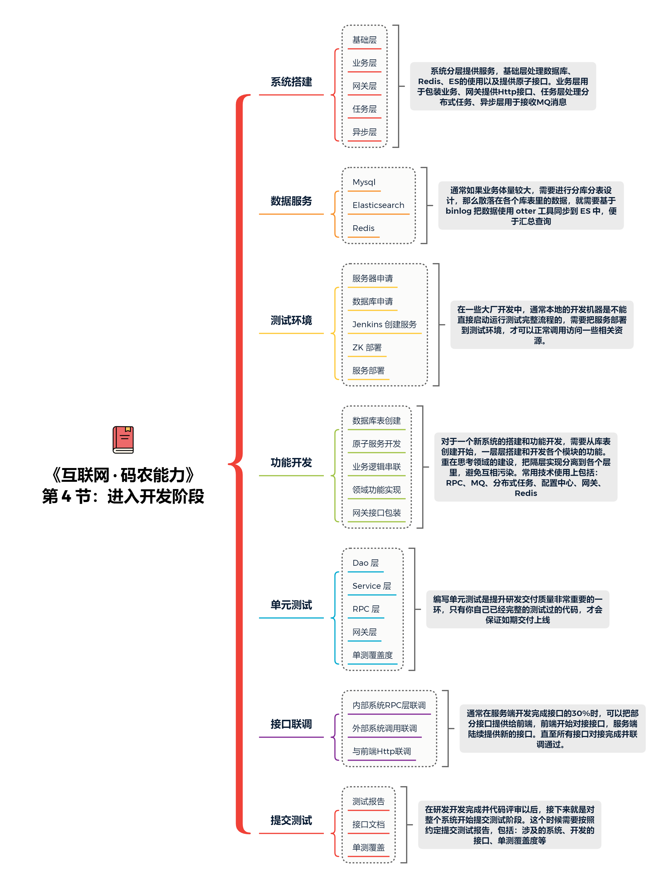 当研发系统设计评审完成以后,接下来就会进入正式的研发阶段了。这个我们按照一个完整的新系统开发过程中,需要的做的事情为准,看看都需要做哪些事情。
