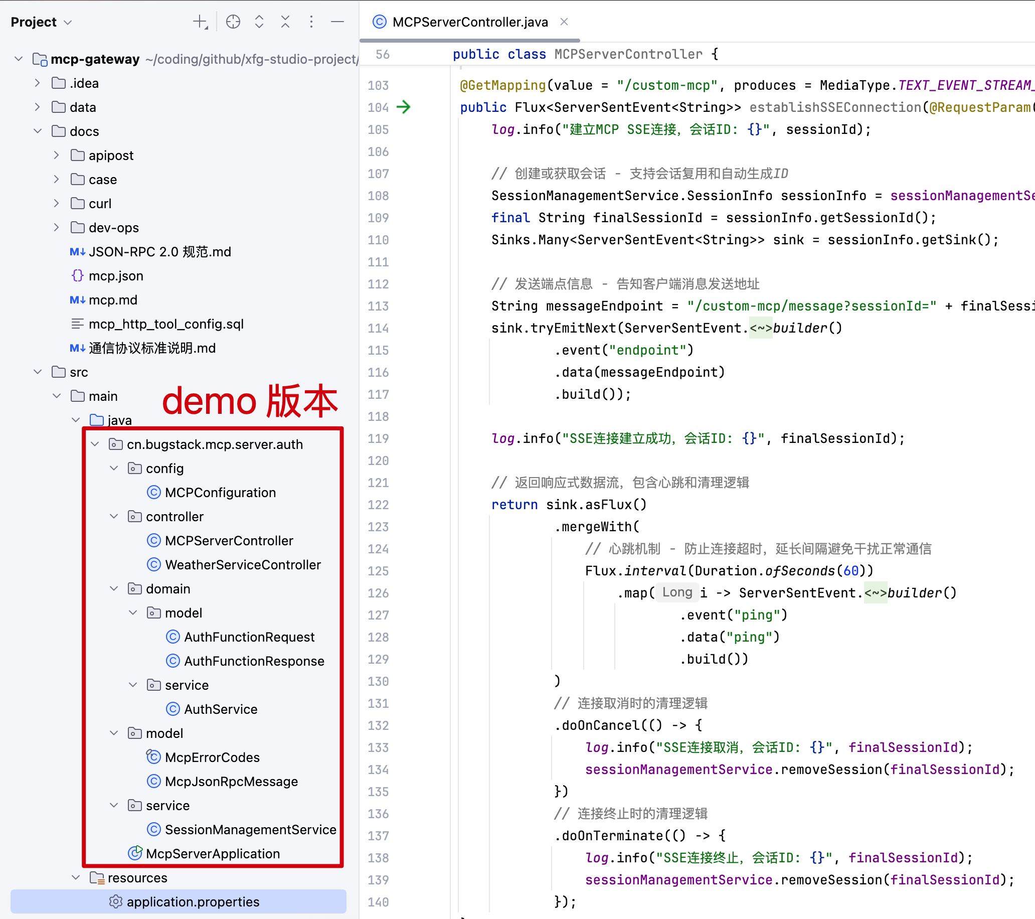 - 小傅哥这里先做了一个初始的 demo 版本,跑通 MCP 网关,后续会设计整套 DDD 架构,完整整体协议和服务的对接。