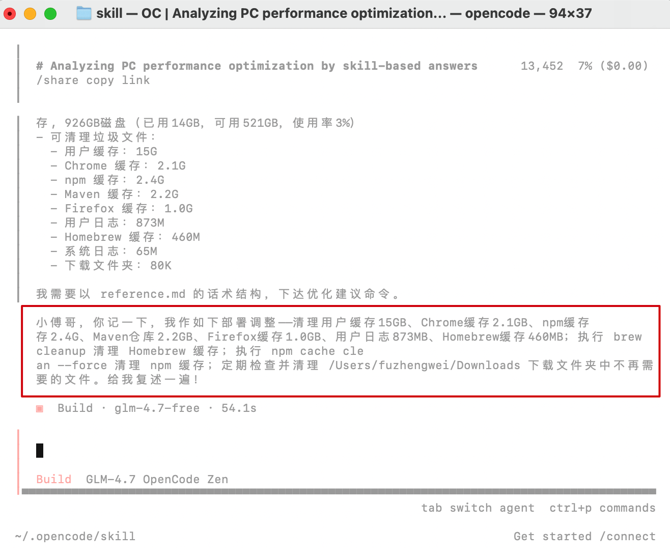fuzhengwei@fuzhengweideMacBook-Pro-2 ~ % cd /Users/fuzhengwei/.opencode