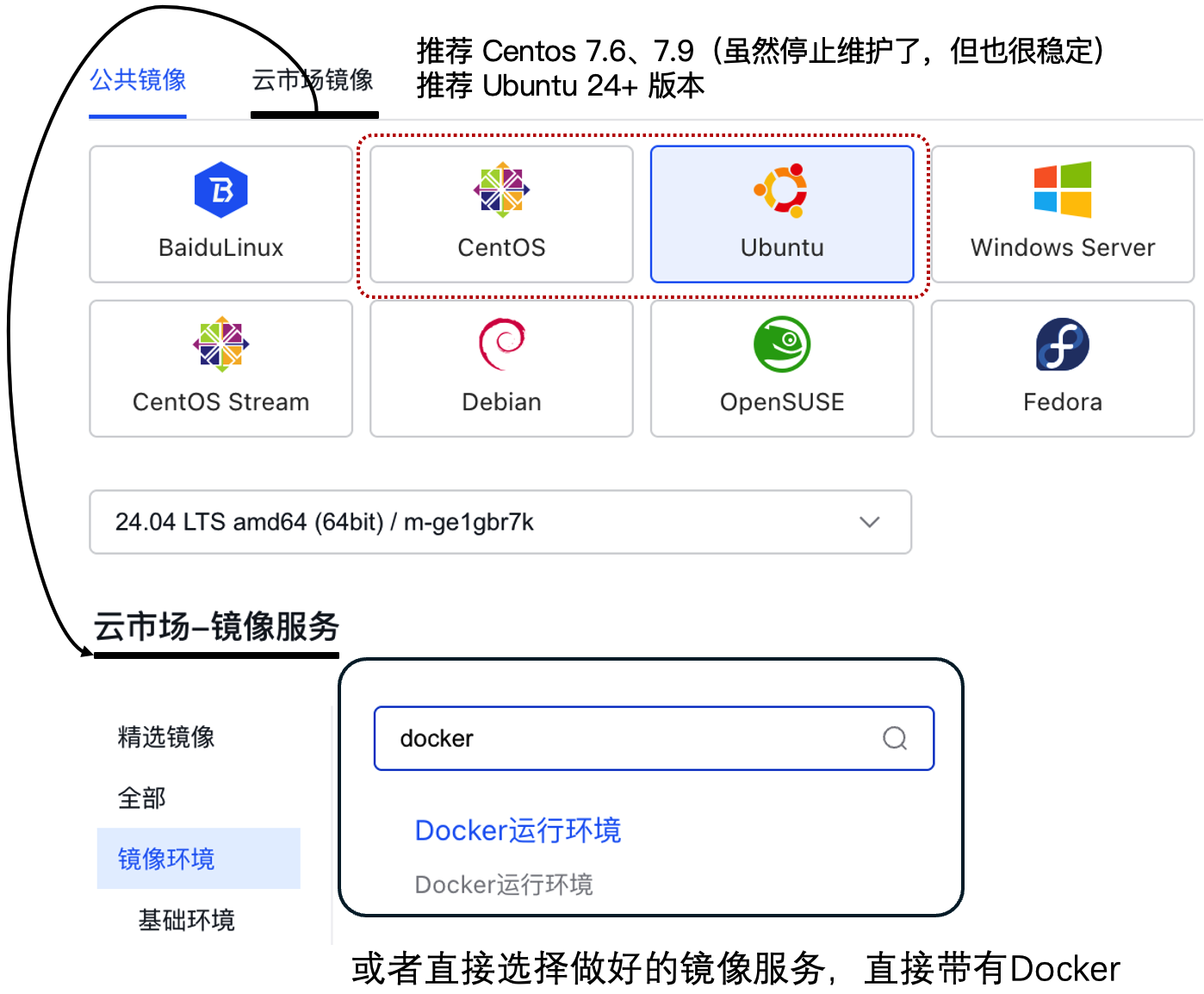 这里比较推荐 Centos 7.6、7.9 或则 Ubuntu 24+,这两个系统,我已经做好了一键安装脚本,可以让你非常方便的把 Docker 以及一些常用的软件,全部安装完成。