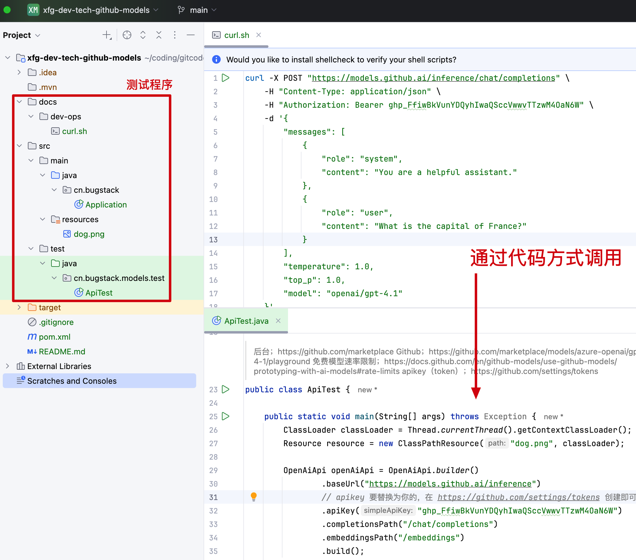 - 说明:这里小傅哥准备了一套基于 Spring AI 的测试工程,来验证 Github LLM 的使用。你可以下载后,替换 token/apikey 即可调用验证。