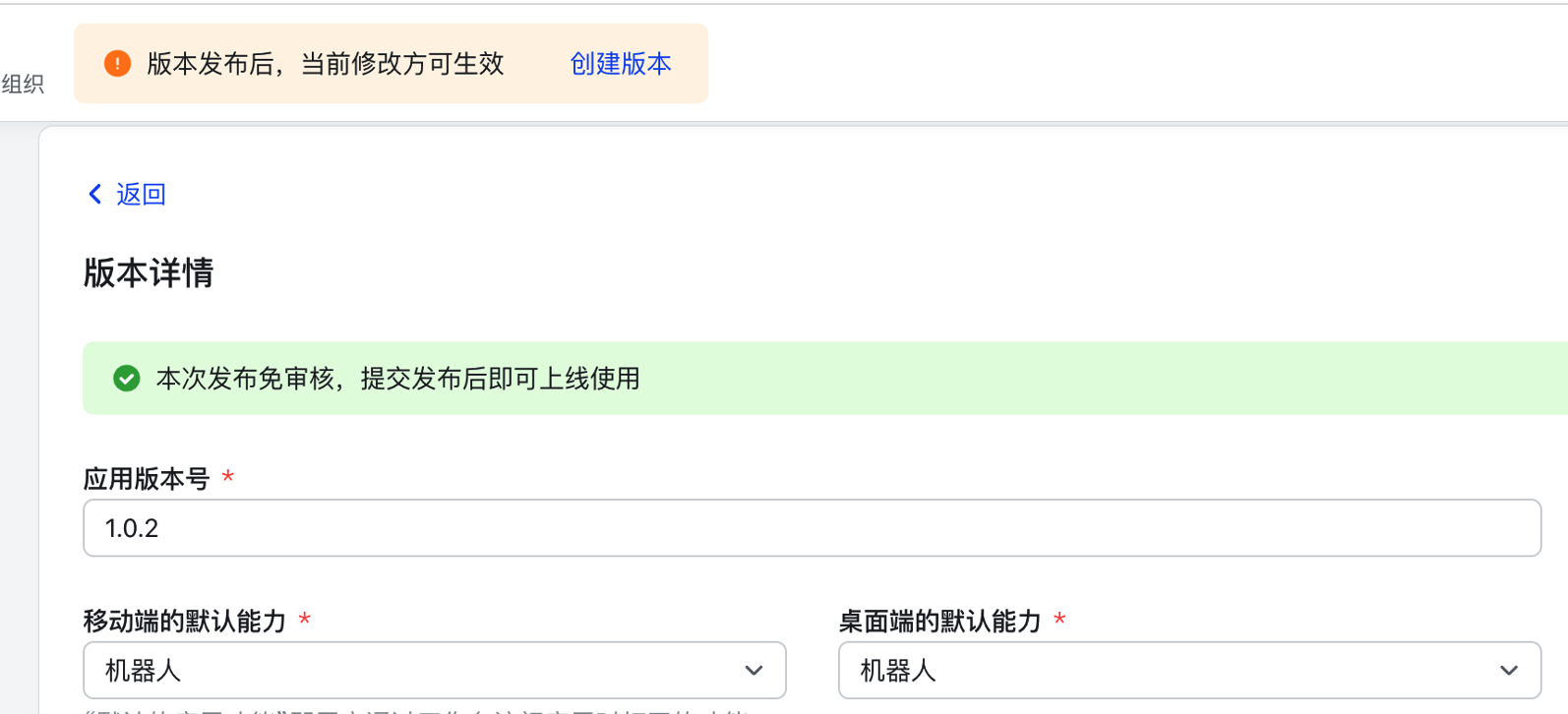 - 点击发布应用,版本号 +1